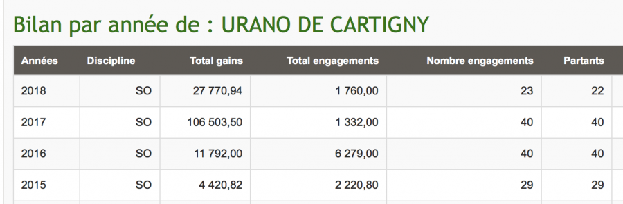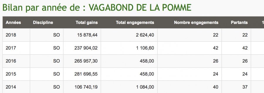 Niveau argent, à mes yeux, les pertes peuvent s'expliquer par le nombre moindre de parcours (une 20aine de parcours en moins pour les 2, même si en 2016 Vagabond fait sensiblement le même nombre de parcours mais avec plus de 10 fois plus de gains qu'en 2018) mais aussi et surtout par le changement de pilote.