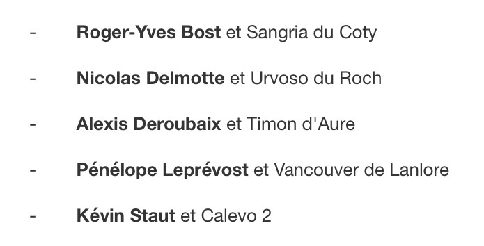 La FFE mise tout sur les autres disciplines :/ et je connais pas de gros sponsors pour fournir des chevaux à part le haras de Hus...