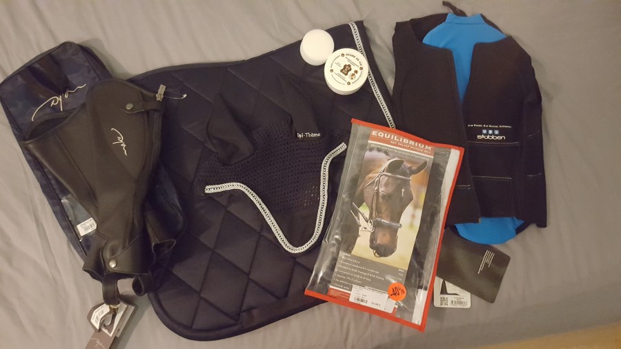 Bien moi j' étais vendredi comme prévu, c’était top. Je suis revenue avec une paire de boots de chez sellerie baude, deux filets à foin, un complément de chez husse pour mon gros, une cordelette pour stick et une crème cicatrisante à l'aloé.