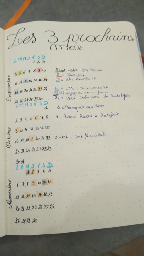 Les 3 prochains mois (il faut que je prépare la suivante sur ma fin septembre, j'ai déjà des trucs à noter, genre date de vacances de Noël ^^)
