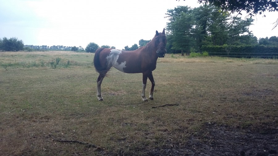 Il vit à l'année dans un pré de 6 hectares, au foin à volonté tout l'hiver, jamais de ration. Chez nous le surpoids c'est la norme, tous les chevaux sont gros, la dirlo les aime obèses.