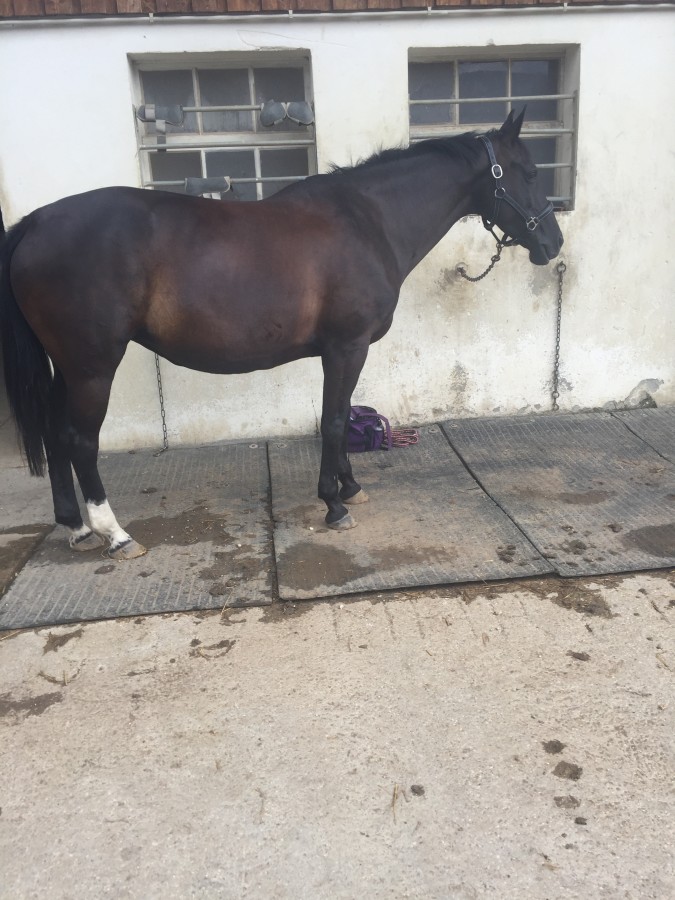 je viens me joindre à vous propriétaires désespéré (c'est bientôt les alcooliques anonymes ici ) donc je vous présente ma jument de trait qui est à la base une KWPN de 13 ans répondant au nom de Zara alias rondouillette. Car malgrès ces 1m55 au garrot je pense que Madame fait bien 600kg.