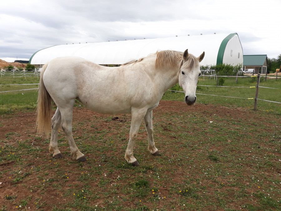 Et Prun, j'ai pas vraiment de photos d'elle ou elle n'a pas la tête dans l'herbe donc on voit pas vraiment son état mais on peut lui sentir les côtes et certains jours, en fonction de comment elle se tient, on peut même les voir