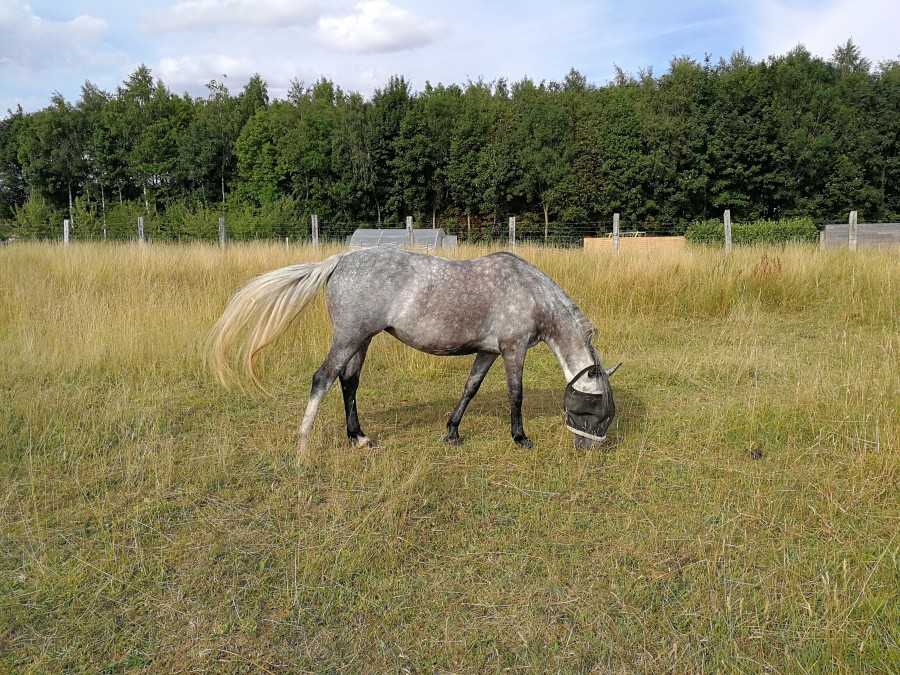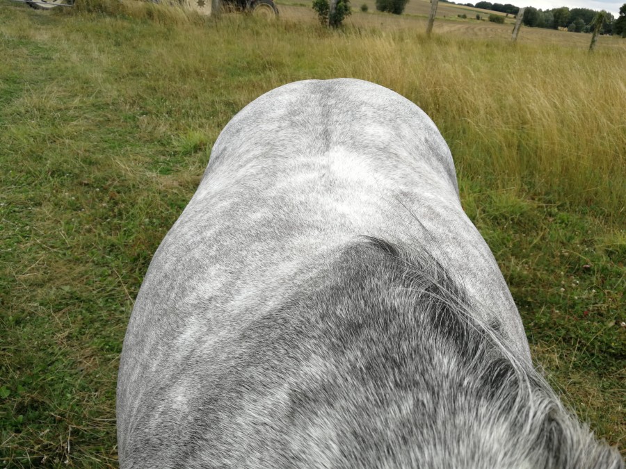 Elle vit toute l'année au pré ou l'herbe est très très riche !!! J'ai donc eu l'idée de réduire la surface de son pré à 400m2 ( à peu près) ou elle est avec un copain (sans complément ni foin en plus). Maintenant sa fait 3 semaine qu'elle y est et je trouve qu'elle a déjà perdu un peu