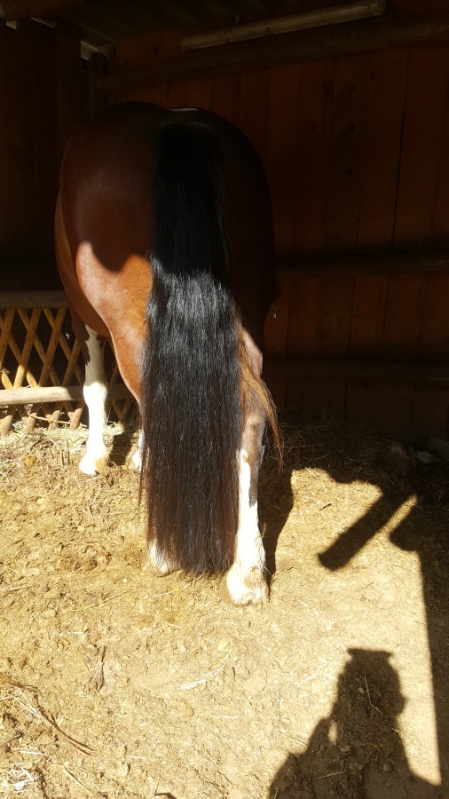 Poils brillants - crins qui ont bien poussé... queue trop longue ... (cmv au top)