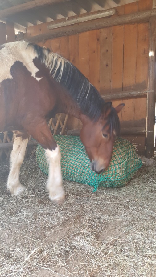 Je vous partage le mien du coup car poney a bien dégonflé, j'ai même redécouvert son garrot! Il m'aura fallu un panier puis un paddock ras mais bon c'est mieux pour elle et puis maintenant elle peut remanger normalement!