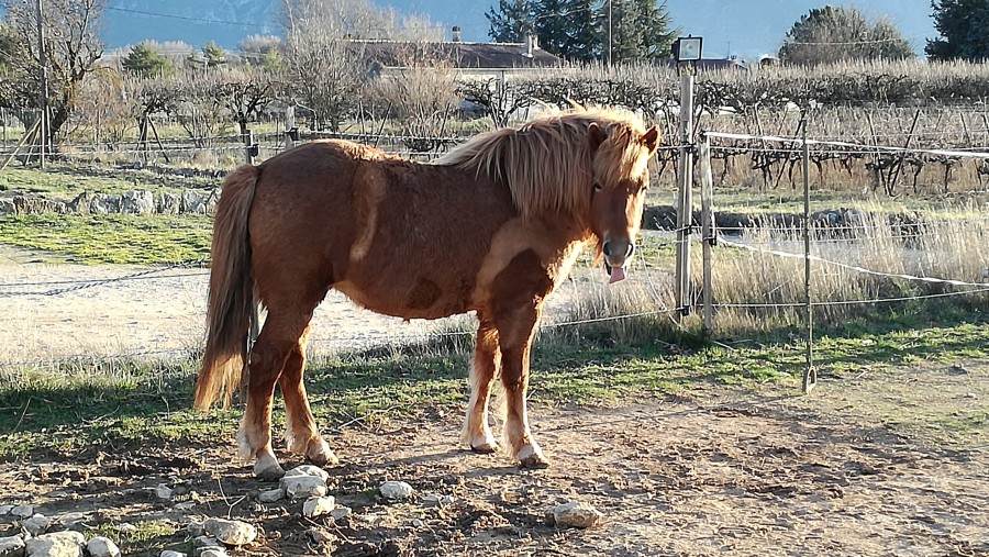 Elle vit toute l'année au pré ou l'herbe est très très riche !!! J'ai donc eu l'idée de réduire la surface de son pré à 400m2 ( à peu près) ou elle est avec un copain (sans complément ni foin en plus). Maintenant sa fait 3 semaine qu'elle y est et je trouve qu'elle a déjà perdu un peu