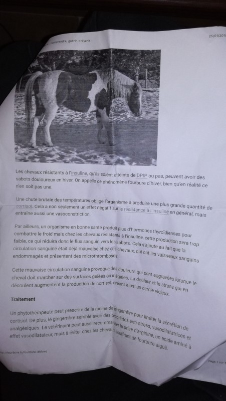 ardennesacheval j'ai évoqué rapidement le filet à foin avec ma mère et elle n'est pas pour mais alors du tout...du coup je vais voir pour lui faire un dossier complet sur la fourbure, les gros machins, les risques (autres que fourbure à avoir un gros), et les différents régimes ! Je ferais ça dès que j'en aurais le temps et je parlerais certainement de la fourbure d hiver sur laquelle je vais me renseigner. Merci sixtize