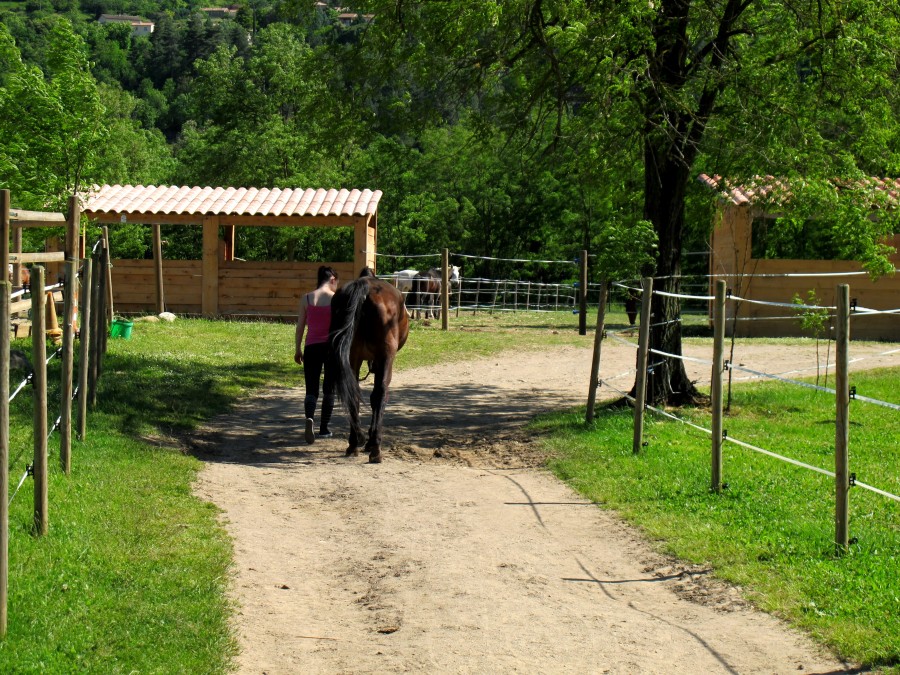 Poney géant dans le rond de longe ! Vous pouvez apercevoir en fond la maison de la troisième sœur et sur le côté à droite un bout du Mas .