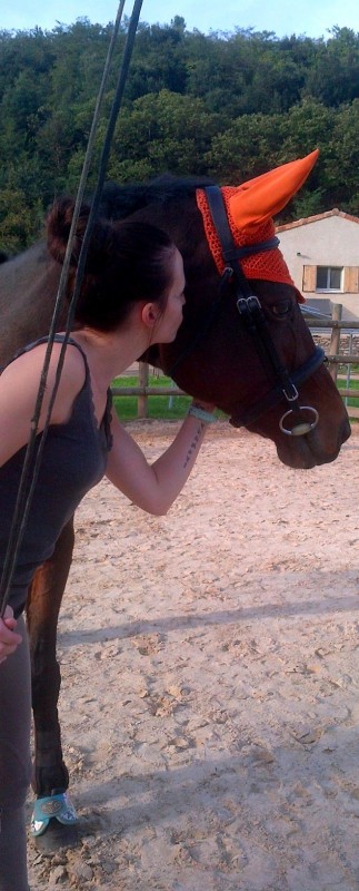 "E" pour qu'elle vienne voir . Je lui demande si cela pourrait venir de ma position et elle m'a affirmé que non . Par contre elle me dit que vu que la morphologie de ma jument a changé ces derniers temps , elle c'est bien musclée de nouveau , cela pourrait venir de là . Certainement que ma selle a frotté durant la reprise ... Je me sens tellement mal ! Pauvre louloute ! C'est décidé je vais changer ma selle et faire appel à un sellier pour en faire une sur mesures pour ne plus avoir de soucis !