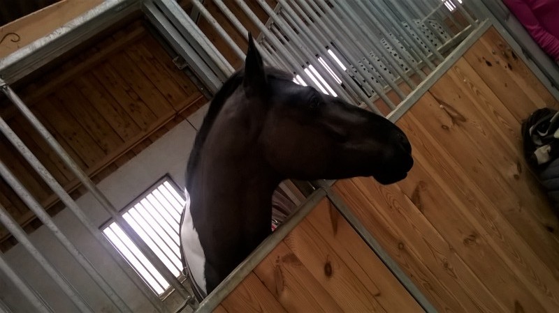 "L" la propriétaire de la DP m'avait prévenue qu'elle serait certainement à cheval sur sa deuxième jument quand j'allais arriver et qu'il fallait que je la rejoigne aux écuries .