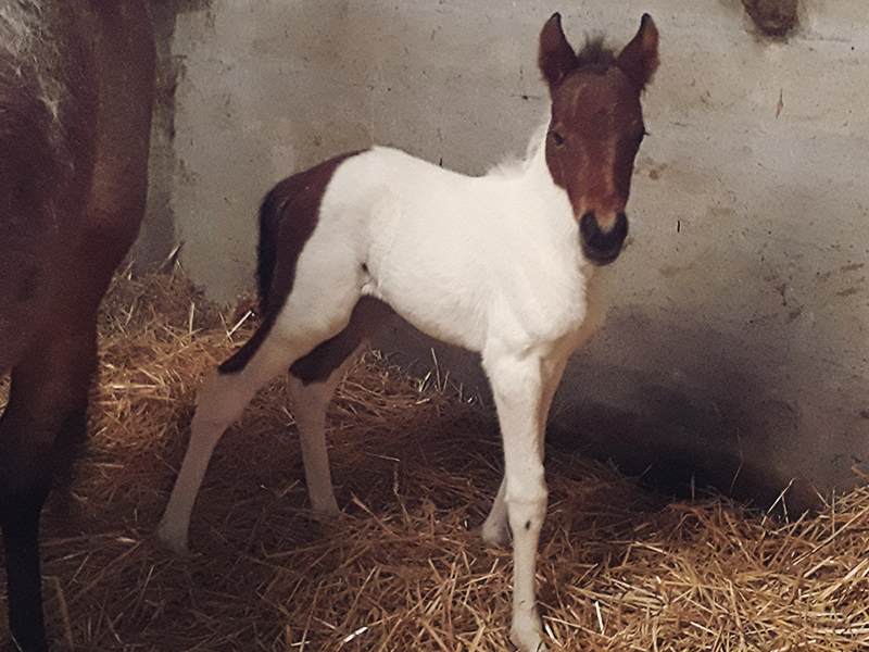 - Auchevalnaturel : Cheyenne (ONCS - APP) x Carbone de la Caboterie, alias Chaman (ONCS - PH) : terme prévu début mai 2018 => IAMKA DU BON PAS ACN, pouliche bai pintaloosa sur base tovero, deux yeux bleus née le 15 mai 2018
