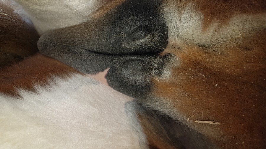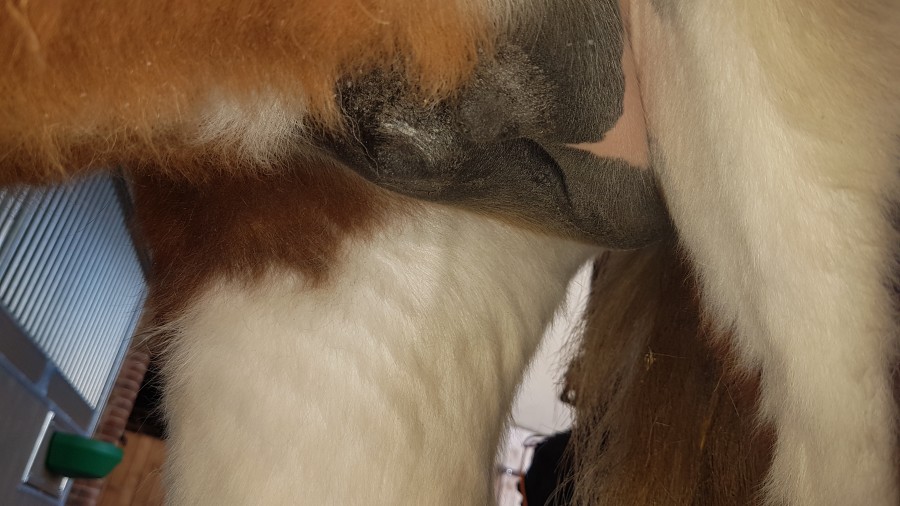 Voilà les mamelles de Etoile aujourd'hui, qu'en pensez vous ? C'est chiant de ne pas savoir la date du terme... sauriez vous dire une date approximative ? :/ je me disais d'ici 2 semaines ? Elle a commencé à faire des mamelles vers le 10 mars..