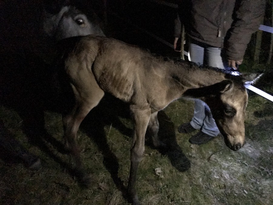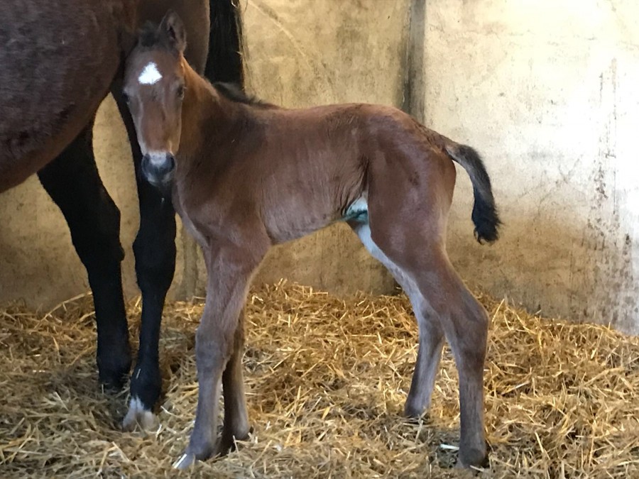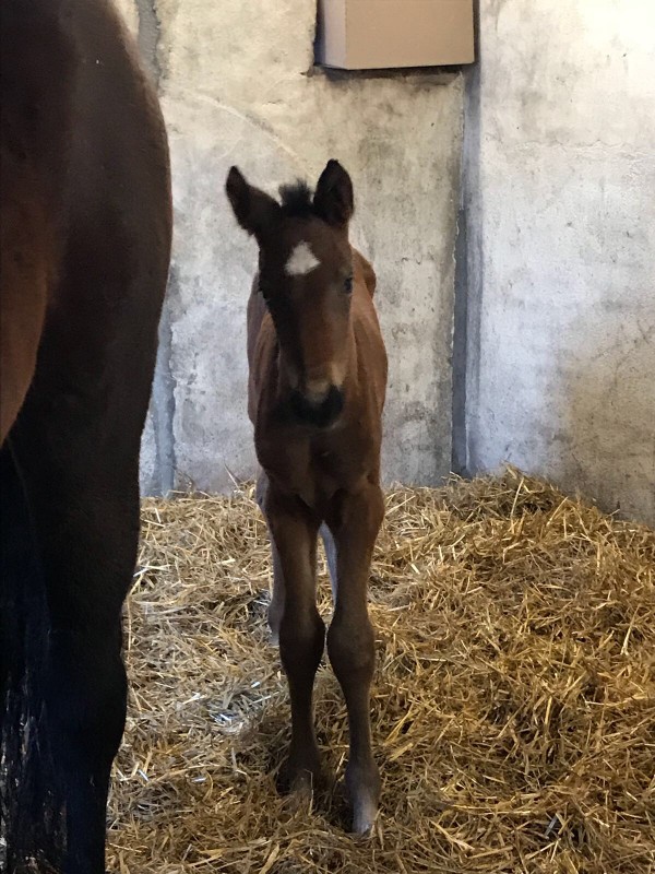 Primipare l'année dernière, son poulain est né à 334jrs.