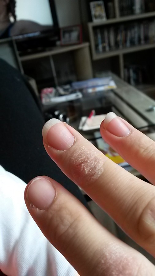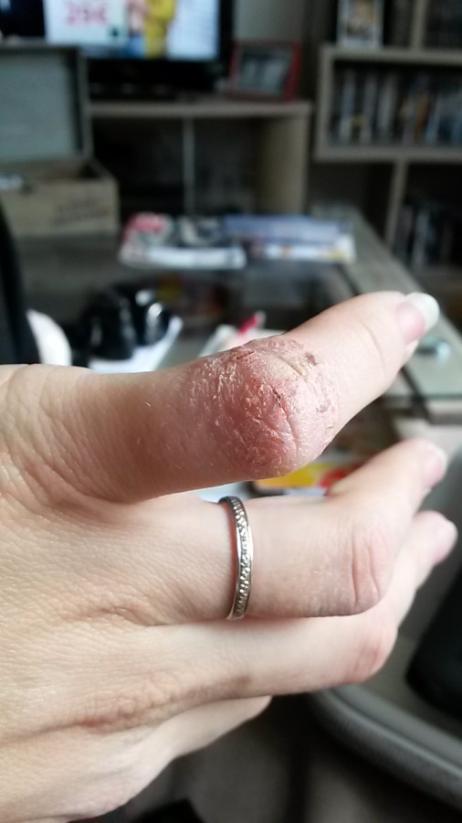Par contre ca ressemble vachement à de l’eczéma, j'ai une prof qui en a, on en avait parlé, elle a presque la main chose aux mains ^^