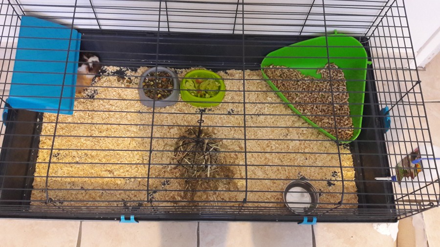 La "cabane" à gauche c'est en fait une mangeoire à foin reconvertie ^^ La cabane initiale de la cage prend bien trop de place...
