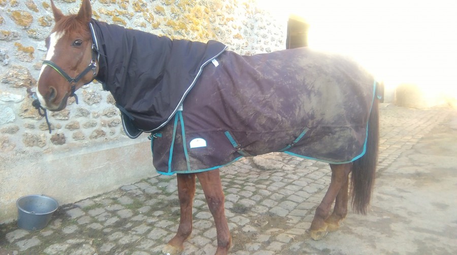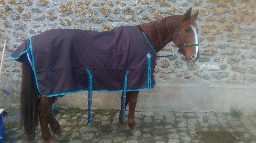 Du coup Saphir passe sa première nuit avec sa couverture. Malgré la tonte il a eu du mal à sécher. Du coup il faisait nuit quand j'ai fini. Et je n'arrivais pas à mettre le couvre cou. J'ai culpabilisé toute la nuit de pas lui avoir mis. Mais finalement il a pas fait si froid.