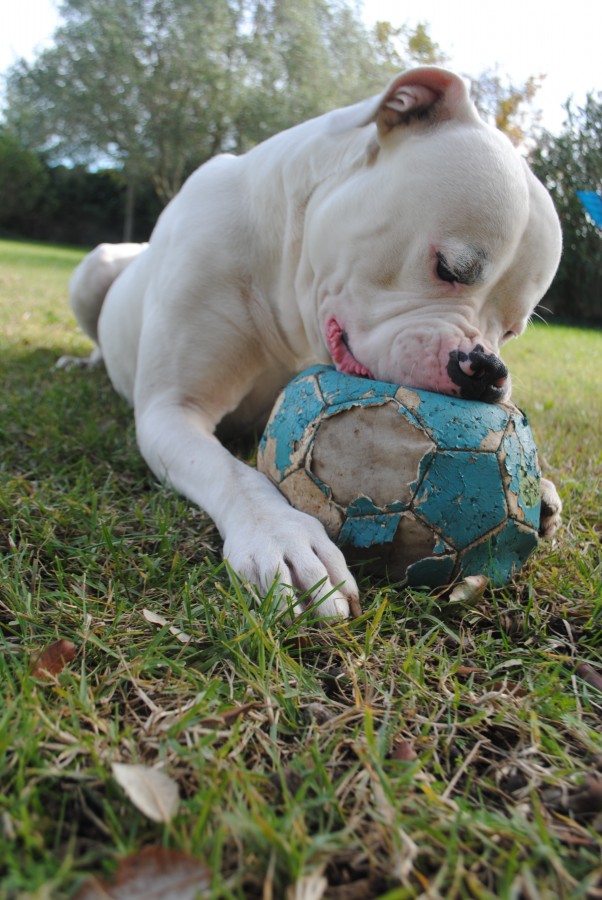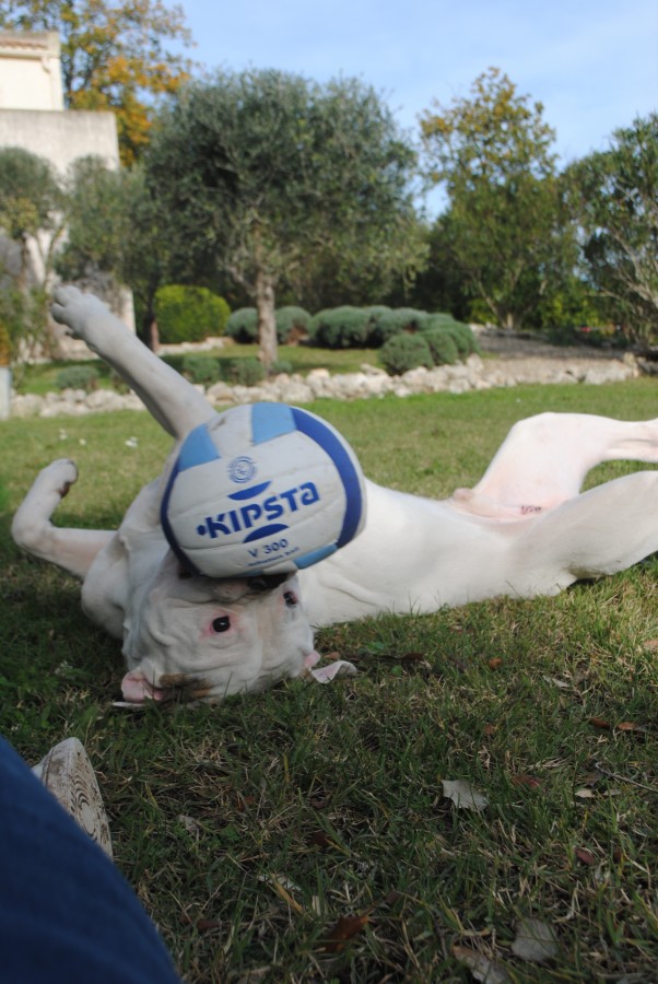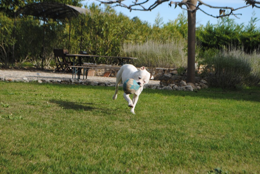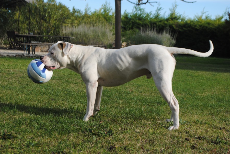 Son défaut est qu'il est assez excité et brute, il faut lui imposer des limites, en aucun cas c'est de la méchanceté, en effet dans sa tête c'est encore un chiot mais de plus de 50 kg