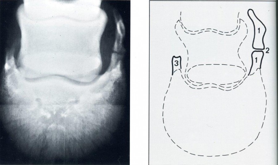 - radios des pieds : ossification du processus palmaire avec fracture chronique et pincement 2/3 phalengien (antérieur droit)
