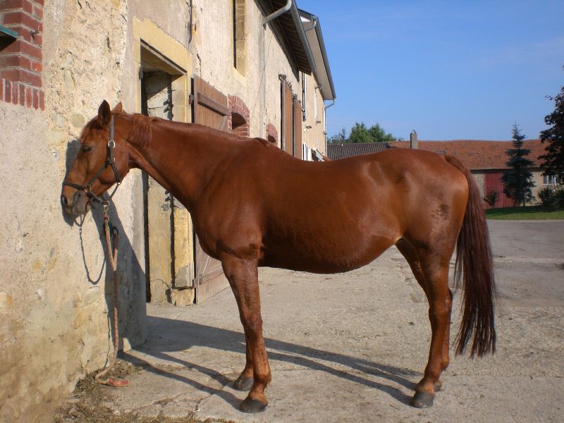 un cheval musclé n'a pas ces plaques de gras, on voit mieux ses côtes, ou voit des muscles au niveau de l'épaule, des cuisses, le ventre est remonté.