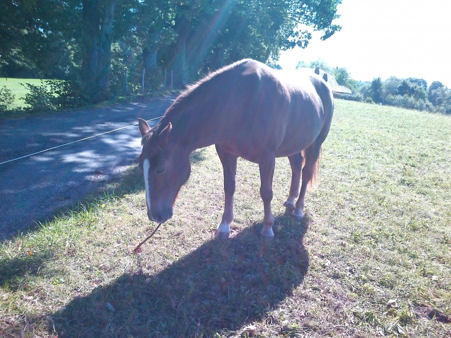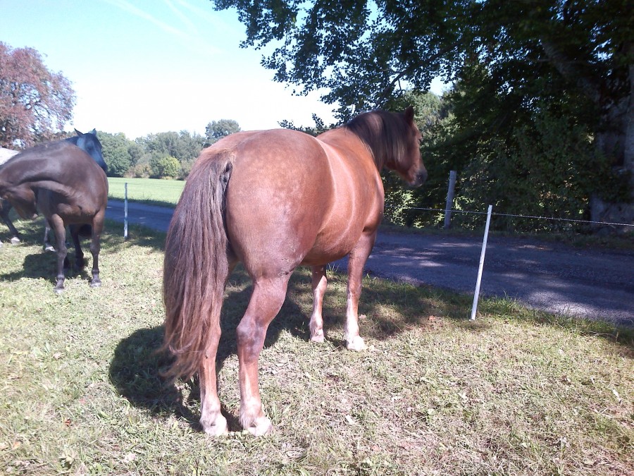 Ma podologue est venue cette semaine, et m'a fait remarqué qu'il devait être mois à l'aise du côté droit, moi "bah oui", apparemment il a une usure anormale des sabots de ce côté là. Entre autres elle pense qu'il a beaucoup de mal à engager le postérieur sous la masse, il triche en le déviant sur le côté. Pour autant elle pense pas à un problème osteo, juste du boulot à faire, enfin elle se demande quand même s'il aurait pas une gêne à la hanche car il a plus de mal à donner le pied. Là où c'est très marrant, c'est qu'en début de boulot (mai), c'était l'inverse, il était plus à l'aise à droite! De là à penser qu'il a compensé ...