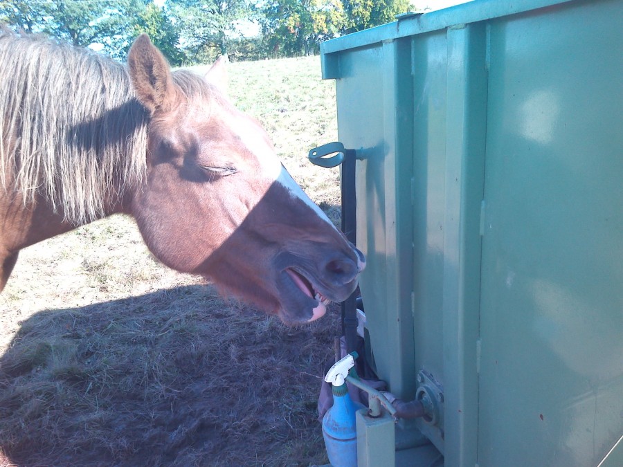 J'ai fait les mêmes manips le lendemain sur mon autre cheval, lui c'est horrible, les points sous la queue, il te laisse t'installer, et après quoi, 3/4 secondes, il plaque le couard de toutes ses forces, sérieux ça fait mal! Des fois je finis par y arriver après avoir fait d'autres points, des fois non.