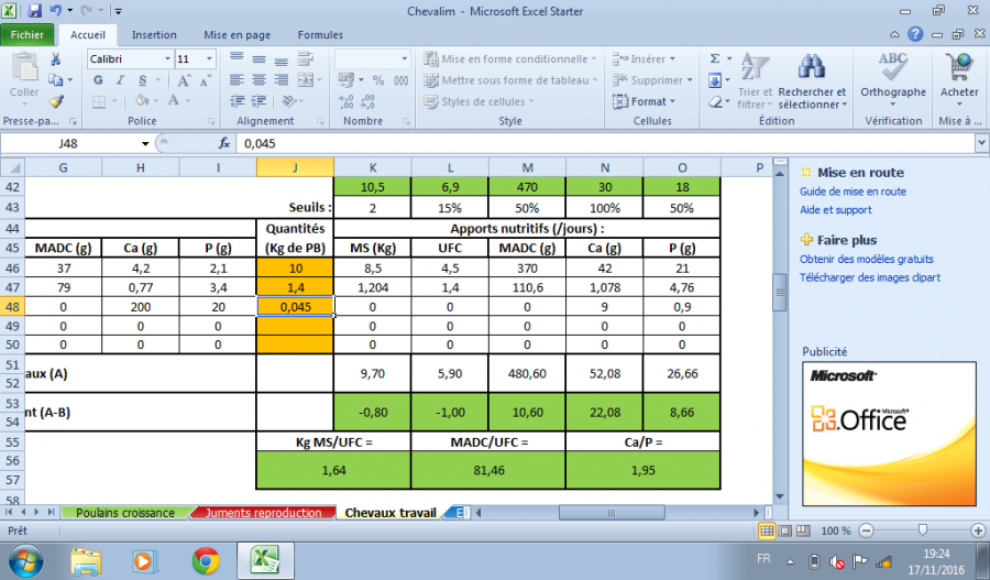 Et maintenant pour ma pouliche sa me met sa. Je me suis basée sur 8 kg de foin.