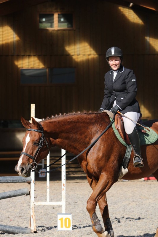 Tour costaud, ils ont pas fait semblant. 1 dans le manège vers le fond, facile. Grande courbe puis petite diagonale oxer. 3 slalom au galop SANS changer de pied. (on en parle ?). 4 saut de biais trèès de biais. Transition au trot. 5 saut au trot de 3 cubes, 5 foulées en ligne droite le 6. 7 demi cercle de 20m, sur le demi cercle s'arrêter 3sec puis pas-galop, 8 vertical, à la réception selon le pied prendre la ligne courbe de gauche ou de droite et l'oxer associé. Sauf qu'il y avait 5 foulées et que la décision fallait la prendre vite. Tournant très serré et ligne 10-11 en 6 foulées. Tournant large, 60m de galop sans rien sur la piste en direction de la sortie (youpi, les 2 adorent), tournant et 12 vertical à sauter sur la gauche de l'obstacle.