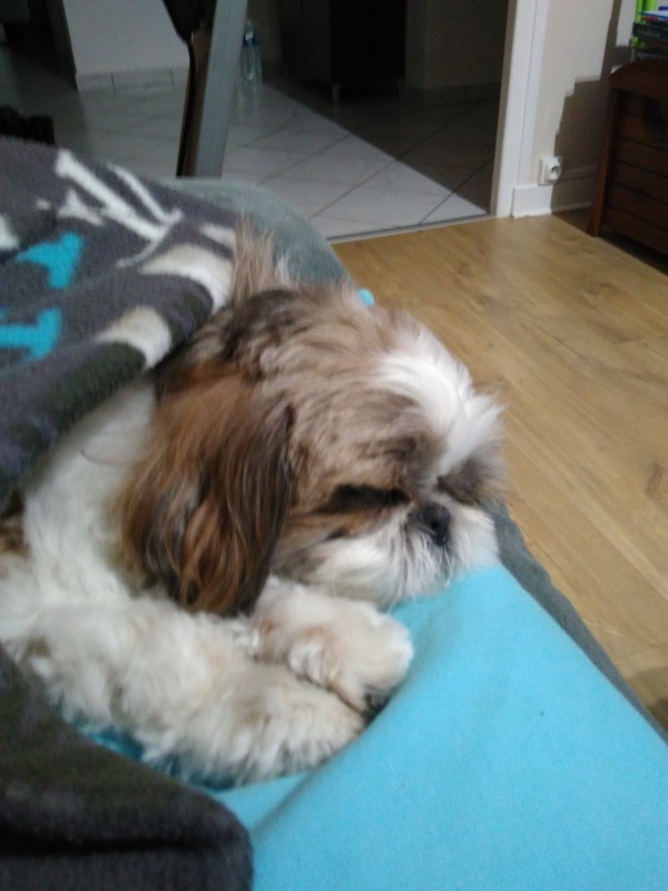 Et puis quand elle est assise mais que ses pattes avant glissent sur le carrelage, alors elle se remet en place toutes les 3 secondes