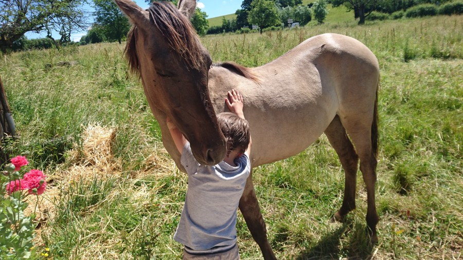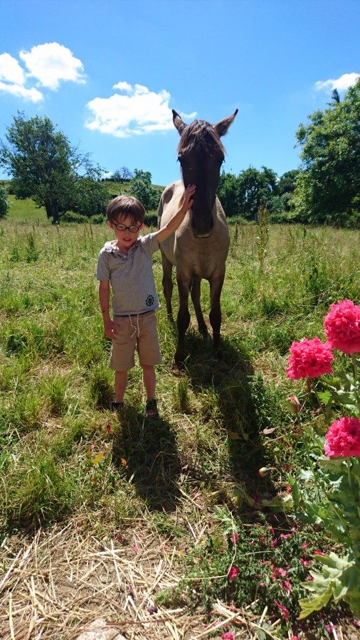 Depuis que j'ai récupérer le cheval de ma soeur, grand SF de 15 ans, ancien cheval de GP, qui vie en box/paddock depuis ses 3 ans, castré sur le tard 8 ans donc pas de contact direct sauf à travers les barreaux du box.
