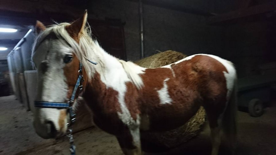 Le vétérinaire a noté bai comme couleur de base, mais pie overo.