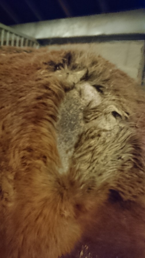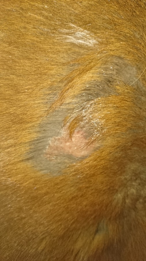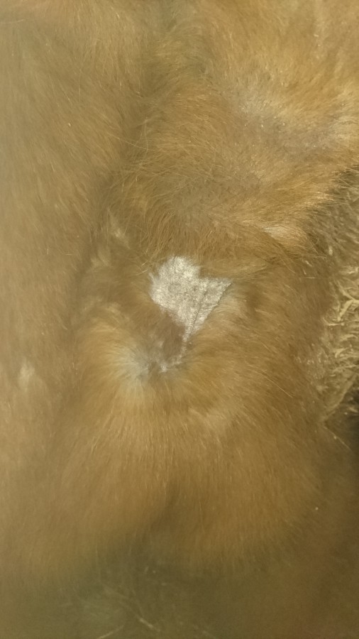 2) Vanda ma vieille bai a des perte de poils par plaque et se gratte beaucoup. On pense que c'est parasitaire, mais dans le doute le véto vient chercker. La pauvre elle n'a déjà plus grand chose sur les OS pour se protéger du froid alors si en plus y'a plus de poils, je vais me retrouver avec un cheval version chien nu du Mexique en plein hiver et au pré....