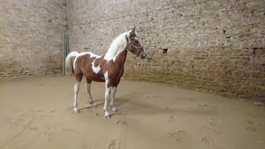 On a fait 2 fois le tour, il était stressé le loulou, il hennissait à tt va. Il a fait un petit peu le foufou à un moment, mais sans jamais tirer sur le longe et ça pour moi c'est la récompense ultime !