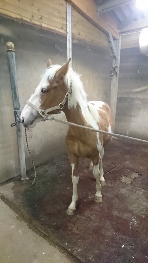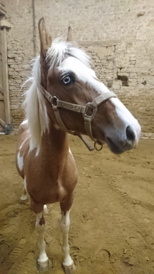 Ce soir j'y retourne mais avec l'aide de ma mère (à deux c'est plus facile) et surtout cette fois je l’attache de chaque coté du licol quand c'est prévu à cet endroits.