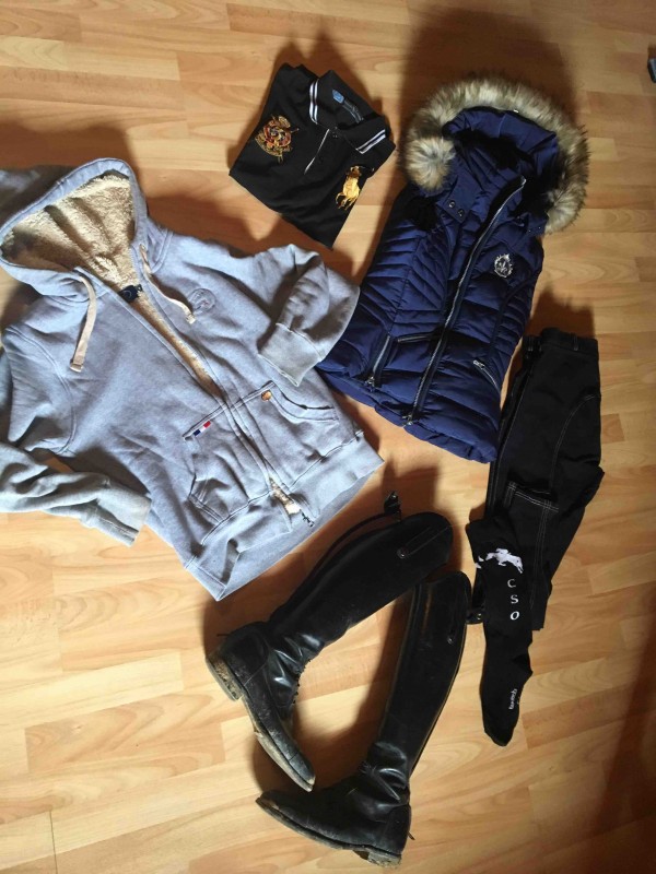 Un chemisier de chez décathlon, pantalon HKM bleu marine... des gants roeckl, bombe bleu marine Samshield :)