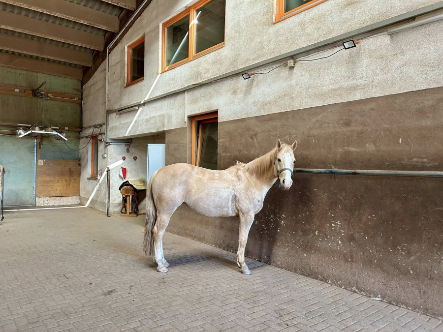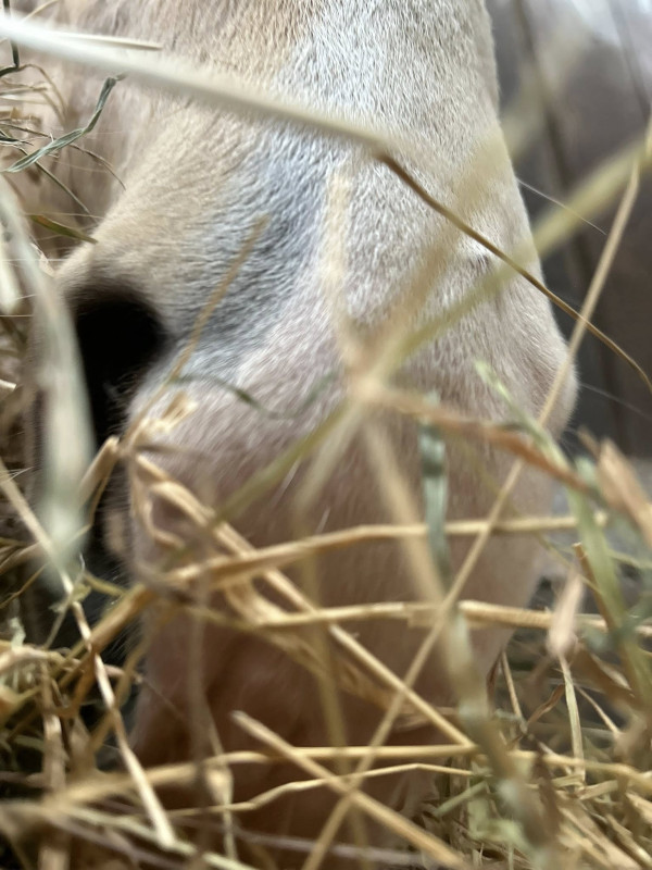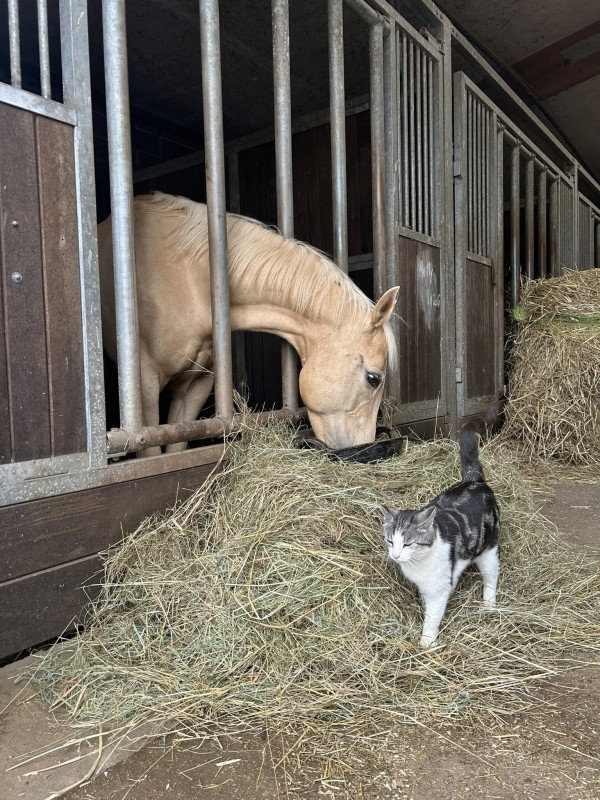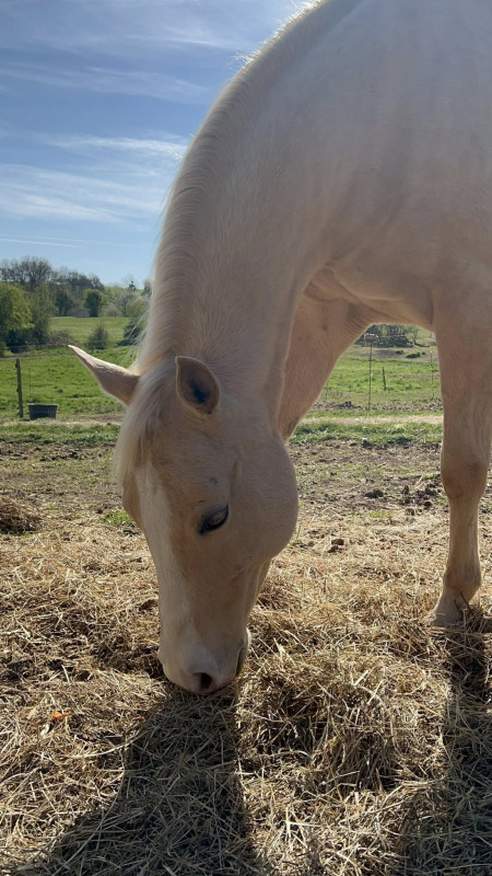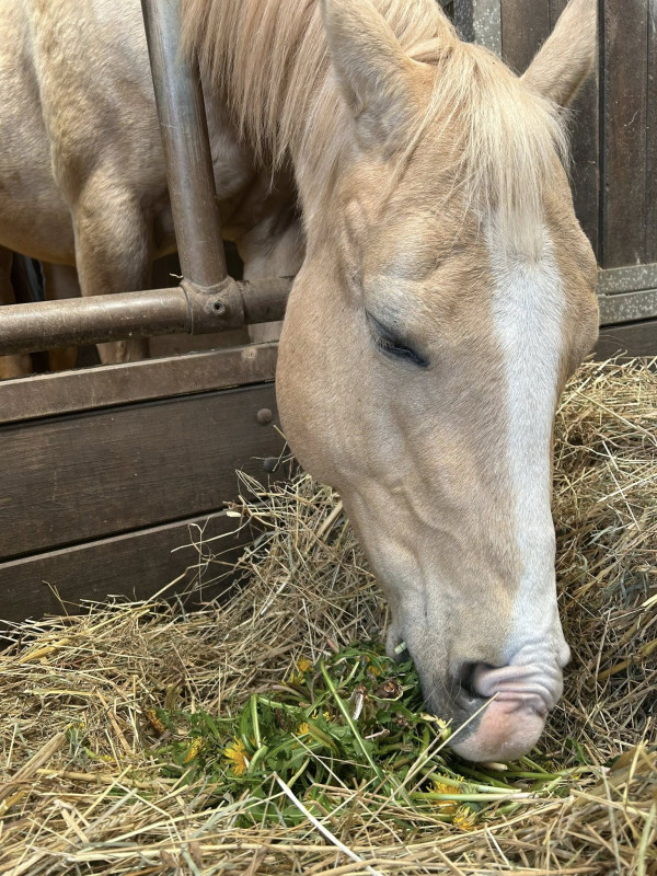 Elle sort pour brouter au sein de l'écurie & quémander des gratouilles/un bout de pommes aux gens ou bien faire sa commère.