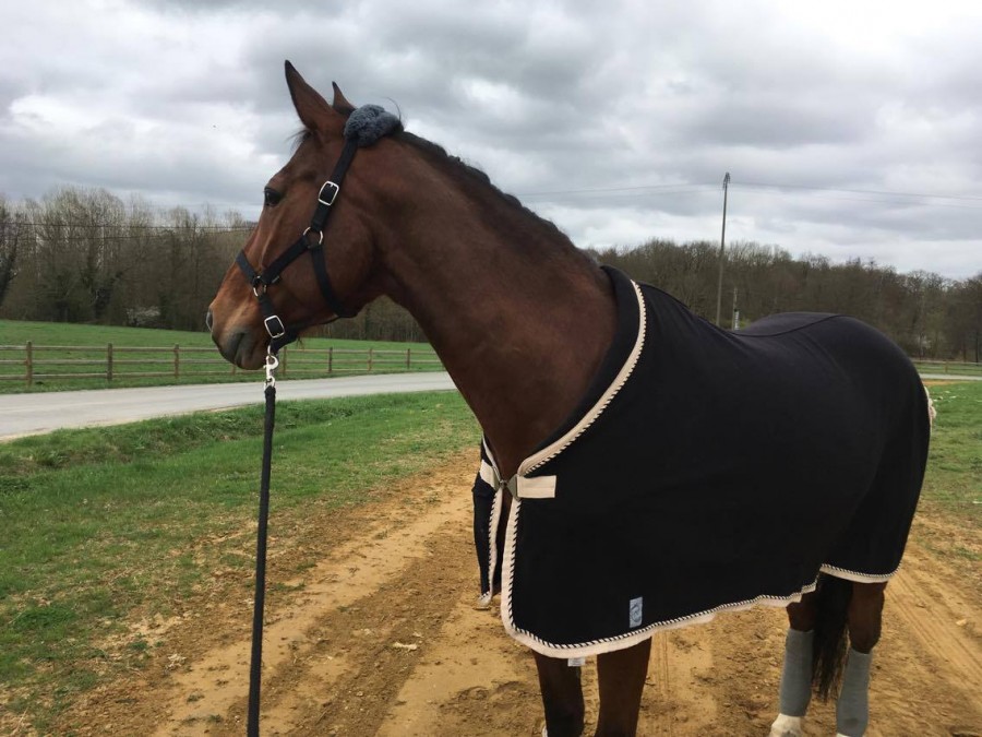 Mirage Equestre; une polaire simple épaisseur donc pas chaude comme la Rambo deluxe (en double épaisseur je dois tester ma Eskadron full neck depuis un an). Elle est parfaitement coupée, sangles amovibles, tresse de queue, la coupe parfaite et le "boudin" qui vient se poser juste au-dessus des épaules c'est le top pour ne pas reculer , attache simple qui ne gêne tellement pas les épaules que je longe avec et qui fait gagner un peu de temps, et vieilli parfaitement pas comme les attaches avec scratch par exemple. Finitions parfaites et conseil de qualité. Le prix 50€