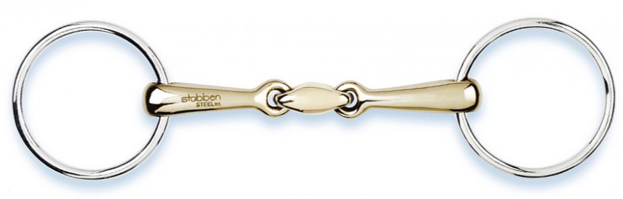 Stubben steeltec dans la gamme en sweet copper. J'ai le mors à anneaux simples, le golden wings à anneaux simples et le filet de bride, tous en double brisure et j'adore. Enfin les chevaux adorent et moi j'apprécie le prix moins élevé que du sprenger ou autre.