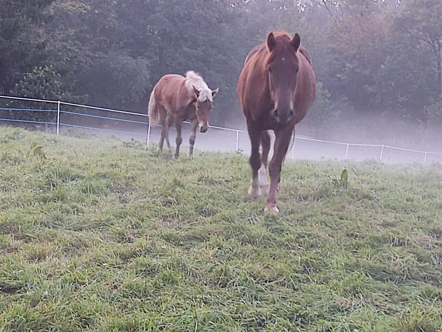 D'habitude on a fait dans l'autre sens, on a enlevé les pouliches pour les ramener ailleurs, mais là les deux peuvent rester encore un moment avec Vikki.