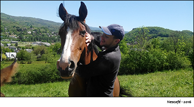 J’en parle beaucoup autour de moi, je demande à le monter souvent et je l’ai puis un jour mon moniteur me glisse qu’il est à vendre vers novembre. Le gros est hors budget pour moi mais j’en parle à ma mère qui me dit de dire qu’il n’est pas dans mes frais et puis on pense à une jument du club dont la propriétaire l’a acheté à 51% et le club les 49 autres alors pourquoi pas… !? A nouveau mon moniteur me fait la remarque et même que le prix pourrait être négociable pour moi. Je réponds qu’il n’est pas dans mon budget puis il me répond qu’il est prêt à faire 50/50 car il adore ce cheval qui lui rappelle son ancien cheval décédé l’année d’avant. Je suis aux anges, j’en parle à ma mère et voilà qu’en décembre il est à moi. Cette fois je suis 100% propriétaire, il m’a juste avancé l’argent. Un bonheur !