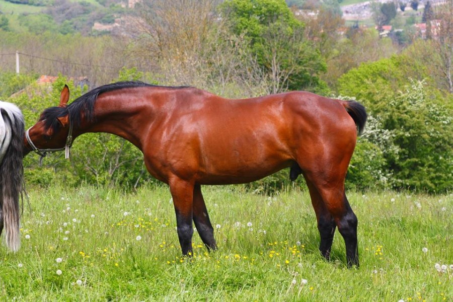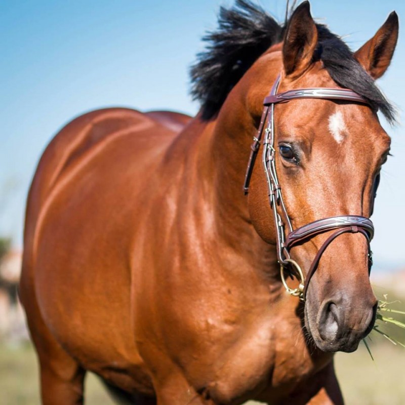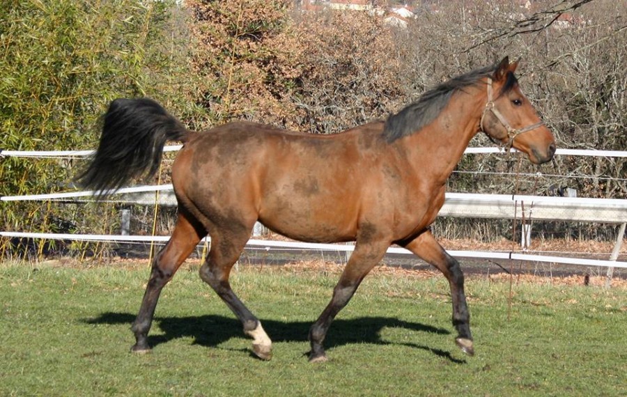 Personnellement, j'aime bien ce cheval pour sa très jolie tête comme je les aime dans la race, fine sans être arabisée, son dos plutôt court et sa belle robe bai cerise. En revanche, il est tout petit: 1,60m à 5 ans et il a un modèle très (trop?) fin, il fait vraiment "crevette" sur certaines photos.