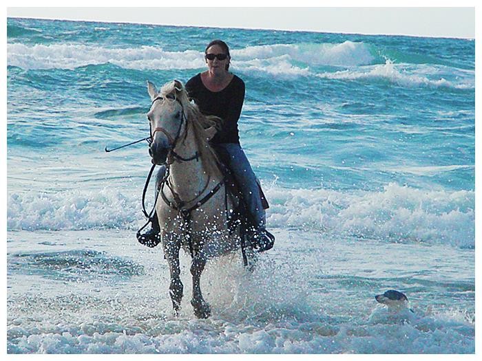 Avant que mon club de vacances ne ferme, je me faisais un galop sur la plage 2-3 fois par été, ce sont des sensations magiques, je trouve, on sent toute la puissance du cheval, on est juste un petit truc là-haut dont il se fiche éperdument.