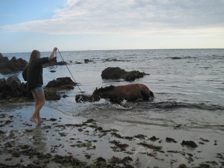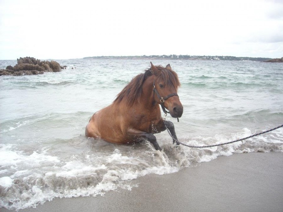bon...je ne vous mets pas les photos de "galop sur la plage" "balade sur la plage"...y a déjà du monde qui en a mis...moi c'était juste la partie..."éclate du poney dans la mer "!