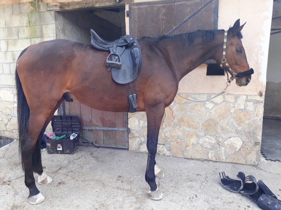 Ne bouge pas au montoir/pansage, pansé et sellé dans un petit paddock il ne bouge pas une oreille