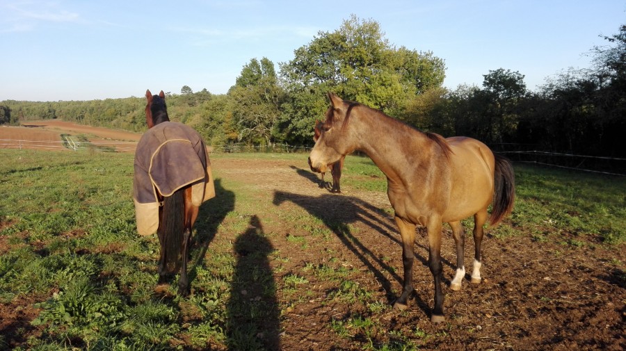 Je sais que certains vont penser que c'est précipité. Mais nous sommes convaincues que c'est la meilleure solution pour tous les deux. On a bien fait part de nos doutes à la gérante, qui s'est montrée très compréhensive. Ils auront réellement du foin à volonté, leur deux repas par jour, un abri, une pierre à sel et ils seront tous les deux. Et Coup d'Etat va pouvoir retrouver son âme de cheval de course, puisqu'il y a une belle piste en sable (élevage de trotteurs).