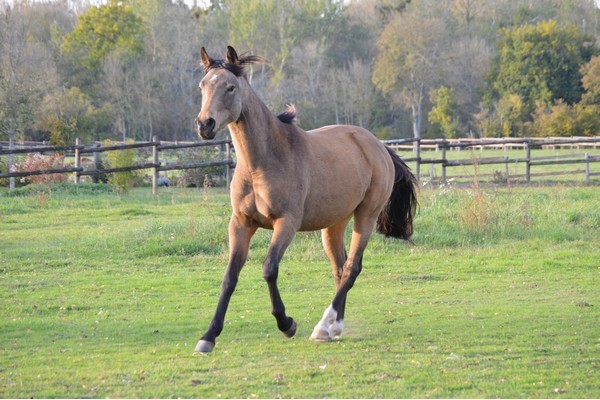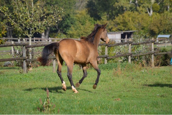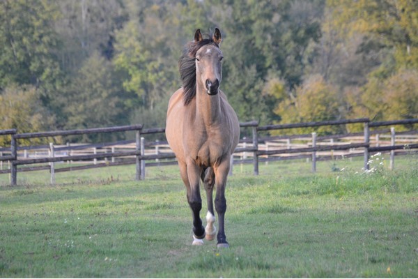 Pour ce qui est de Flash, je le trouve vraiment bien ! Certes, il reste inquiet par moment, notamment dans l'abri. Mais globalement, je vois mon cheval plein de vie. Je le vois trotter, galoper, alors que je l'ai rarement vu avant. A voir ce que ça va donner au fil du temps, mais s'il reste épanoui comme ça, je signe tout de suite.
