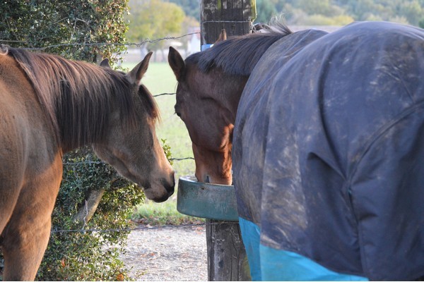 La gérante m'a envoyé un sms ce matin pour me dire qu'elle a pu leur donner leur ration chacun dans leur mangeoire, en éloignant Flash avec son seau petit à petit.