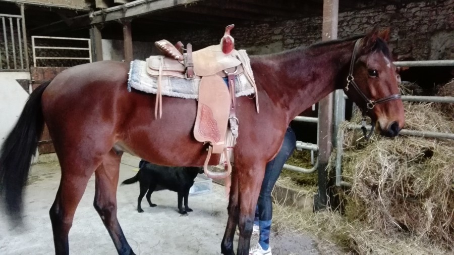 J'aurais aimé sortir Coup d'Etat également, mais je ne l'ai pas fait pour deux raisons. J'ai toujours mal au dos, et je sais qu'il peut être vite émotif, donc je ne voulais pas prendre le risque de me faire mal. Et la deuxième, c'est que je ne voulais pas "punir" Flash, en le remettant au pré et en le laissant seul tout de suite alors qu'il a été adorable.