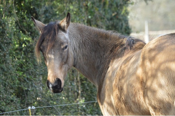 Une fois mon poney parfaitement propre, j'ai décidé de revoir la tondeuse. J'ai commencé par le détacher, lui faire sentir, et lui passer sur le corps éteinte. Ensuite j'allume, et je pose sur son épaule. Rien à dire. Je récompense à la friandise, puis je descend sur l'antérieur. Il a un tout petit bougé mais franchement, c'était que dalle.