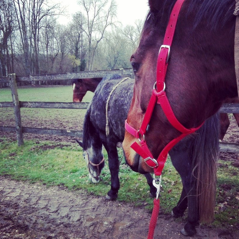 Au programme aujourd'hui, c'était censé être une balade d'une heure en compagnie de Jeanne et son poney. On fait un bon pansage aux chevaux dans l'écurie, Flash n'est pas d'humeur puisque monsieur n'est pas attaché de façon à manger le foin. Dommage.